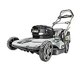 The EGO Power+ offers gardeners a 56-volt, 5.0-Amp Hour battery pack that shreds through the toughest grass without slowing the blades speed. As with all the models in this review, the machine runs on a lithium-ion battery that provides long service life, and holds a charge well, provided you care for your machine.